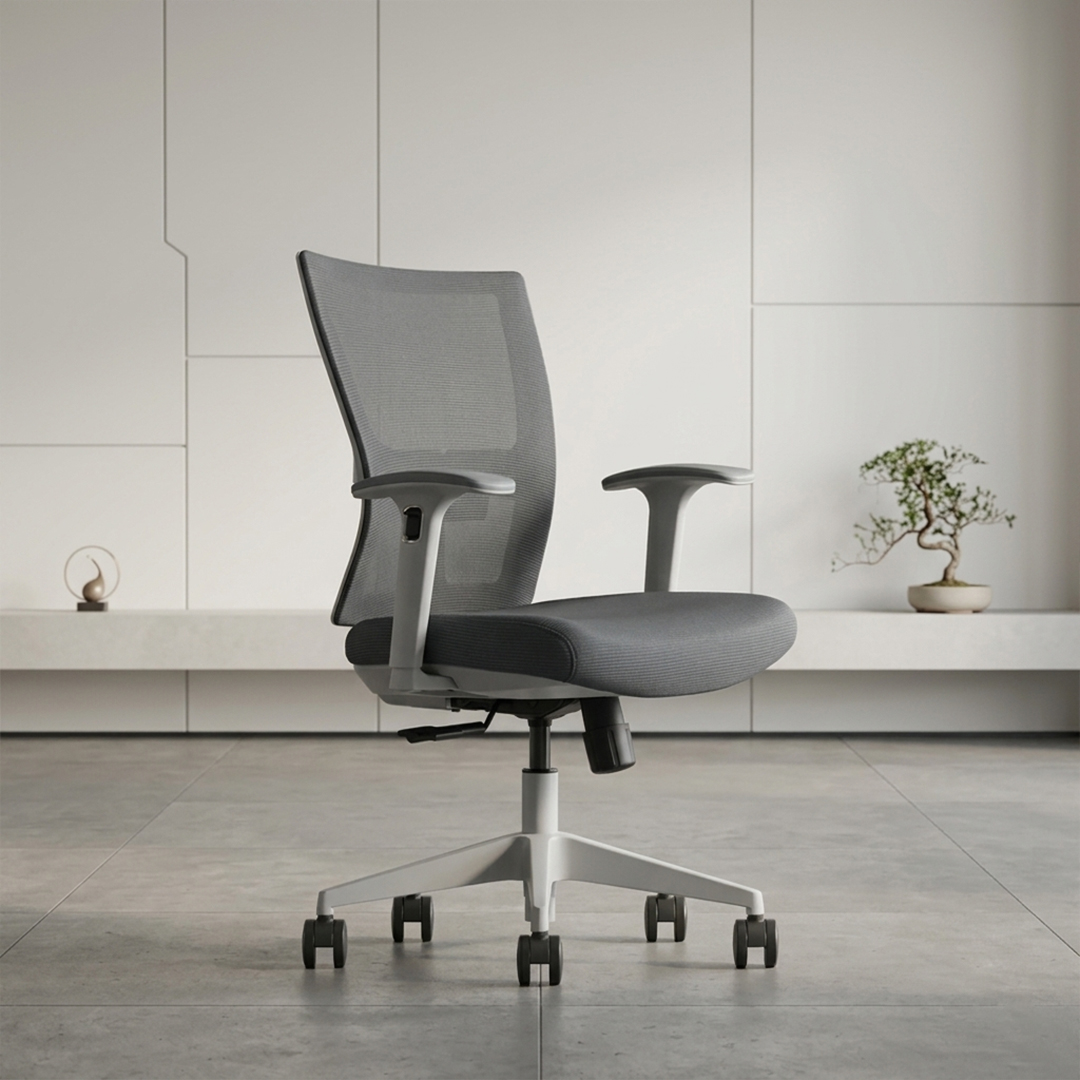 The ZS-GM-MG Grey Medium Back Mesh Chair by Zero Space Furniture is designed to offer ergonomic comfort, modern aesthetics, and reliable performance for everyday office use. Its medium back design provides balanced support for the lower and mid-back, making it ideal for workstations and staff seating.