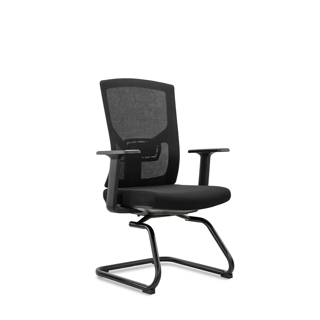 This visitor chair features a PP black backrest with high-quality mesh and fabric for superior breathability and support. The T-shape fixed armrests provide steady comfort, while the high-density foam seat with a plastic shell ensures lasting durability and ergonomic seating comfort.