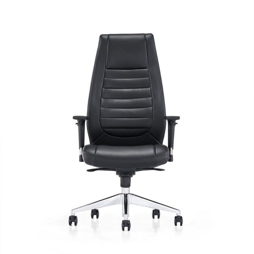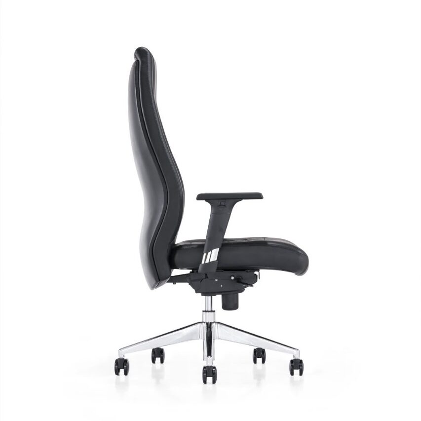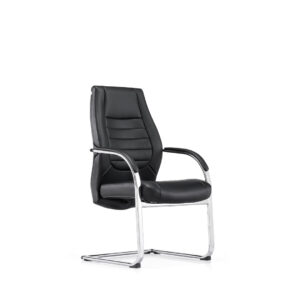 The upholstered armrests with soft armpads provide extra comfort, and the sturdy chrome frame ensures durability and style. The chair’s sleek black PU finish adds a modern, professional touch to any workspace.